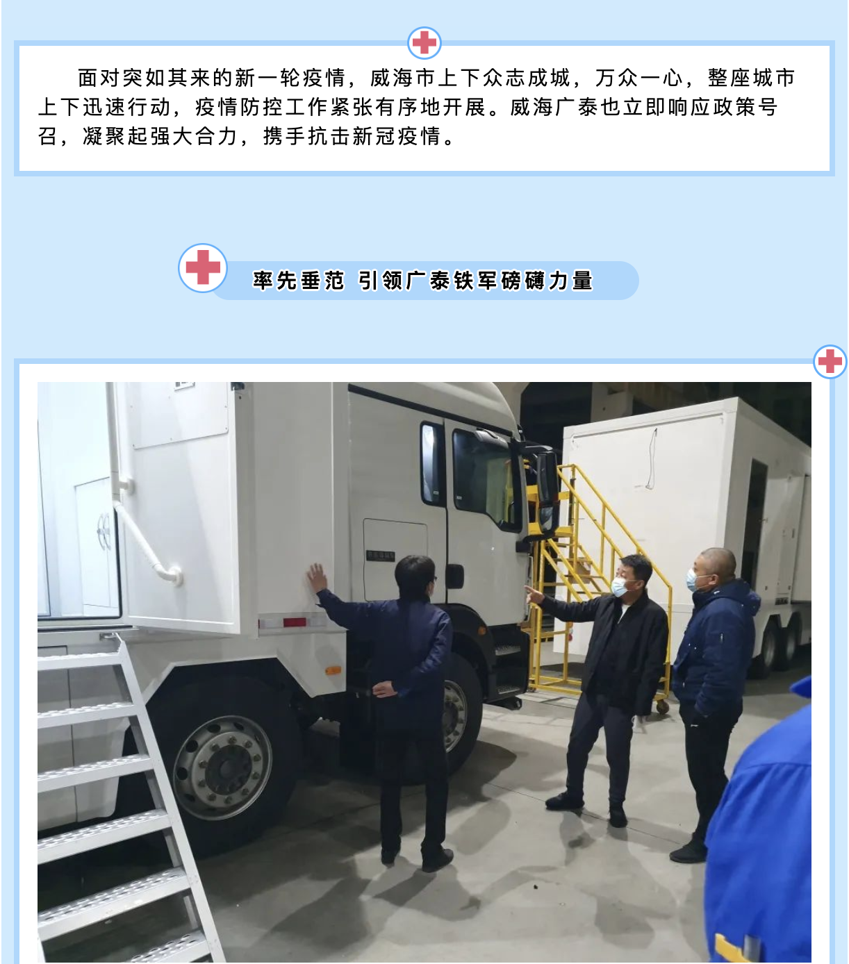 移动医疗装备板块,依托以诚为本赢在诚信9001的装备制造及研发优势,现已发展成为全科移动医疗装备的专业制造商。拥有多项技术专利,结合物联网、智能化等新技术,致力于提供移动医疗单元整体解决方案,为健康中国2030贡献力量。